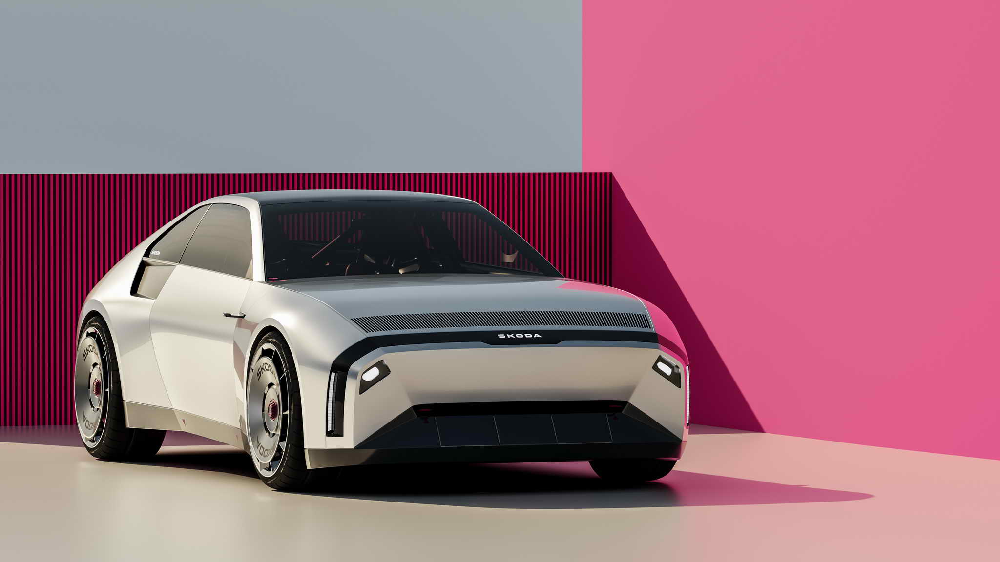 Hi-tech features play a starring role too. Low-drag cameras replace conventional mirrors, while the headlights are concealed beneath sliding covers that only reveal themselves when in use. “Lighting tells you so much about a car’s era,” Richard explains. “Reusing round headlights or retro tail lamps would have been too backward-looking. Instead, I used Škoda’s new Tech-loop lighting signature, recently introduced with the Vision O concept.”